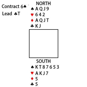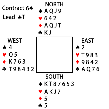 Contract 6♠ by South.