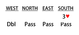 South opens 3♥ followed by 2 passes to you. As East, you choose to make a light balancing double. When partner leaves it in, you are far from sure that you've done the right thing. Your confidence does not increase when the dummy comes down and you see North's wealth of high cards.