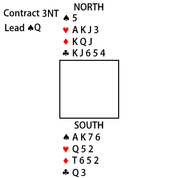 West leads the ♠Q and East plays the ♠2.