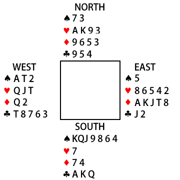 If you hadn't made it clear that West should lead diamonds, he'd lead the ♥Q. South would discard his ♦4 on a heart winner and make 5.
