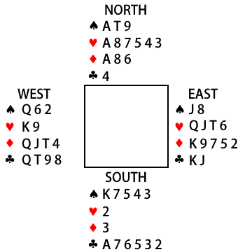 On to the play. On this hand, counting losers would not be helpful. With only 5 obvious winners in high cards, you've got your work cut out for you. After winning dummy's ♦A, what is your plan?